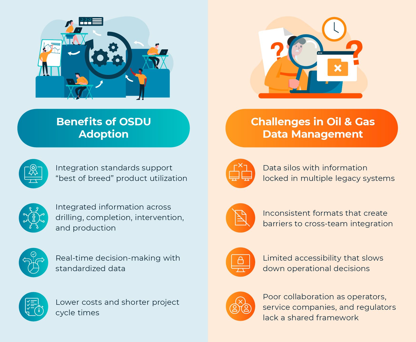 Oil and gas companies face persistent data management challenges, including siloed information, inconsistent formats, limited accessibility, and difficulties collaborating across operators, service companies, and regulators.